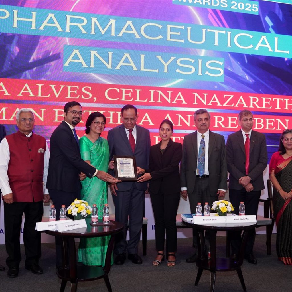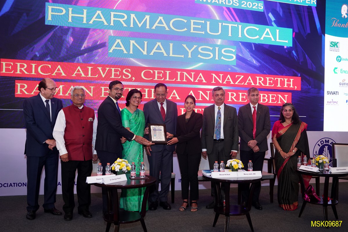 Congratulations to Prof. & Principal. Celina Nazareth for winning the IDMA- ACG Scitech Best Research Paper Award 2025 in Pharmaceutical Analysis, Presented by the Indian Drug Manufacturer’s Association for the publication in Indian Drugs titled “Quantification of Pyrazinamide in Human Plasma: Development and Validation of a Liquid Chromatography Tandem Mass Spectrometry Method”