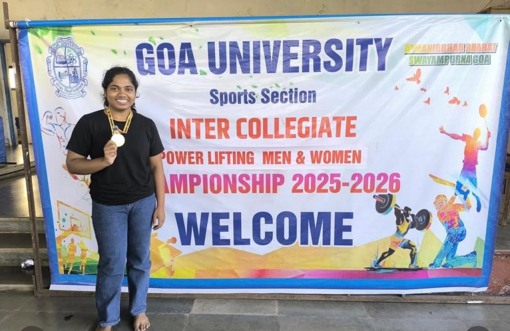 Congratulations Miss. Siya Naik for winning Gold Medal at Goa University in powerlifting under 63 kg weight category PR of 287.5